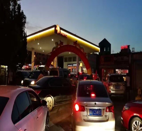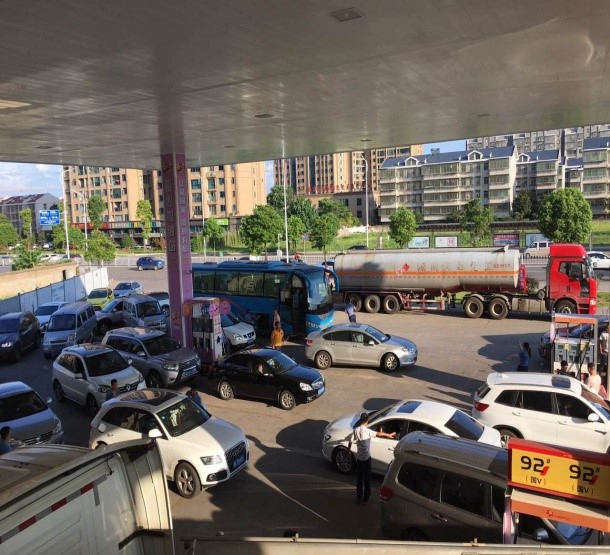 7月18日,藍天如洗,加油站內彩旗飄飄,從上午7:00開始,各加油站便進入了忙碌不停的狀態(tài),一整天車輛川流不息,絡繹不絕。